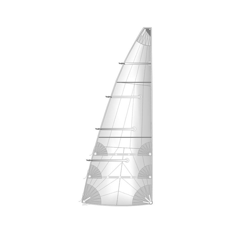 Грот Трирадиальный раскрой. Фаловая дощечка. Два ряда рифления. Латкарманы и комплект полу сквозными латами. Нержавеющие кренгельсы. Круглые накладки усилений и боуты. Булинь и стопор булиня. Киса для паруса.